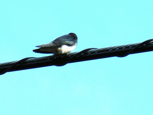親鳥は空中で静止して、電線に止まっている子供にエサを与えると、また次の獲物を探しに休む間もなく飛び立ちます。さっきまで一斉に「ちょーだい、ちょーだい!」と騒ぎ出した子供達は、親が飛び去ると、何事もなかったかのようにチーンと静まり返ります。