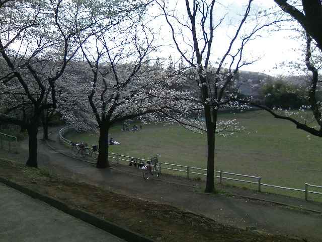近所の公園の緑地にシートを拡げて、花見を楽しんだり、ごろり昼寝したりと思い思いのひと時を過ごしている様子がうかがえました。