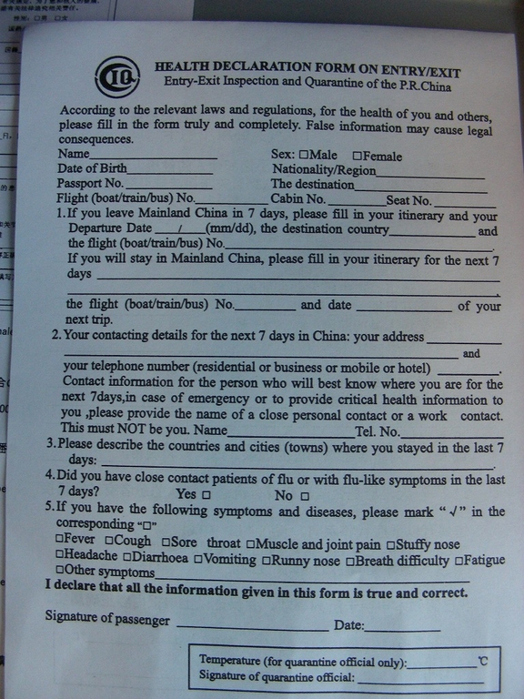 機内では一時入出国のためのEDカードと、今は新型インフルエンザのために厳重になっている検疫に提出する書類を書きました。