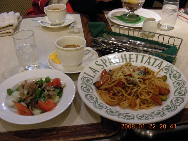 その日の昼には大盛りのつけ麺を食べて、それほどお腹が空いていなかったんだけど、母が「食べろ食べろ」というので、いちばん安いスパゲティーを注文。