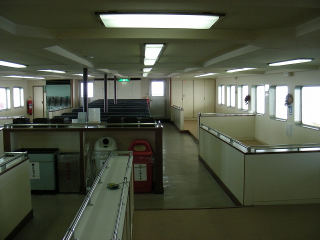 | まず家を出て山口県周南へ。周南と言われてピンと来ない人も徳山といえば有名かもしれません。 その徳山港から大分県の国東半島の北、竹田津港行きのフェリーが出ています。このフェリー乗り場が最初の目的地で、まずは僕の運転でスタートです。2時間弱程度の道のりです。 ここは母の庭でもあるのでナビゲーションに憂いはなく、僕の運転技術のみが問題でしたが、幸いにも難なく到着しました。途中で休憩と昼食調達のために入ったスーパーは、さすが徳山!(都会)と思わせるような大型スーパーで、入店した目の前で展開されていた手作りベーグル売り場で、(まんまと計略に嵌って)しこたま買い込みました。 徳山港からスオーナダフェリーで一路、竹田津へ。 5、6台の大型トラック。乗用車はなんと我が家のベンツ(HONDAの軽)のみ。 客室はごらんの通りで貸切状態。。。フェリー会社の悲鳴が聞こえるようです。 海からの絶景を期待しましたが、残念ながら梅雨初日ということもあり、霧と霞で視界不良。海風は寒い。お楽しみというわけには行きませんでした。 周防灘は内海なので波がなく、揺れがほとんど皆無だったのは幸いです。2時間の渡航でしたが、客室のソファー4席分に寝そべって過ごしました。 フェリーの注意書きに「ドック(駐車場所)でアイドリングしないように」と促されているにも関わらず、おかまいなしにトラックのエンジンをかけっぱなしでいる車が何台かあって・・・換気の悪いドックでの排気は、迷惑極まりないです。 しかもフェリーのメリットといえばガソリンの節約ですが、アイドリングしていたのでは走行しているのと同じです。業務で会社から経費が落ちるから、使わなきゃ損くらいに思っているのでしょうか。 モラルが欠如した人がなんと多いことかと、意思に反して悲観的になってしまいます。 |