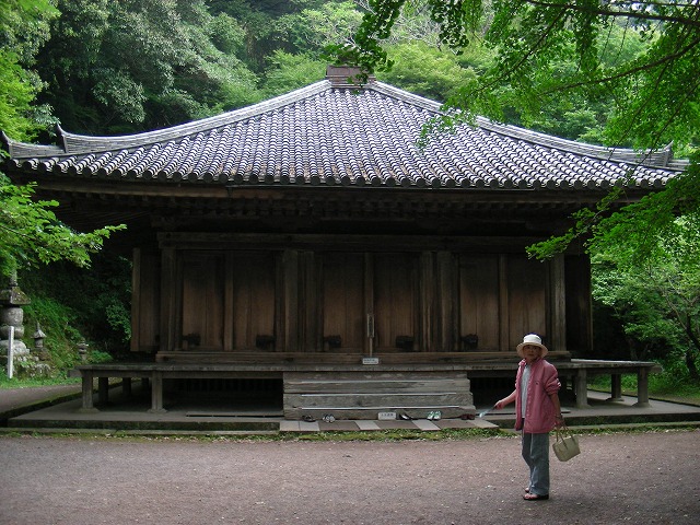 | 竹田津港からは、山道を通って、富貴寺を目指します。 大きな道から外れた場所にあるため、土地勘ゼロ・方向音痴ペアにとっては最大の難所になります。 両子山(ふたごやま)を登って下るという山道ルートしかないため、右に左にと見通しの悪いカーブの多い道を行きました。名所が多いせいか、道路案内がしっかり整備されていたのが救いで、なんとか目的地に到着。 伯母から「お参りすると宝くじが当たるらしい」という情報を事前入手したため、それが先入観になってしまっていて、時を同じくして到着したどこかの観光バスに乗ったご一行を見て「ここに来る方は、宝くじが目的で・・・?」という話を聞いたところ 国宝です! と一蹴。 それが参拝の目的。そりゃそうだ。 不純なのは母。 平日昼間、若いカップル一組の参拝客を見かけたのはビックリ。 |