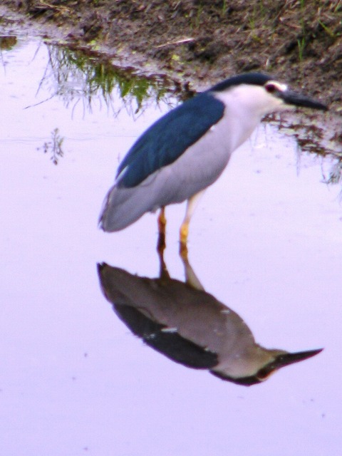 いつも見るサギは首があるのに、この鳥は無い。しかも、キレイな青をまとっています。家に帰って図鑑で調べたら、これはゴイサギという鳥だそうです。