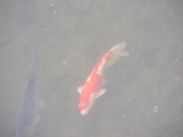 帰り道では、川に大きな鯉が2匹。橋の上からズームで撮りました。