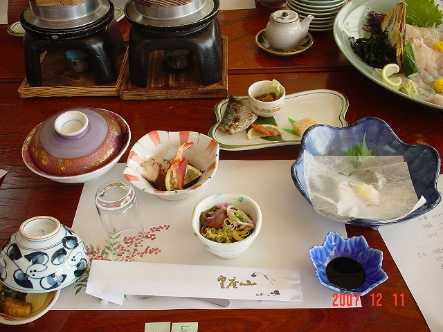 豪華な食事。立派なヒラメの刺身など。