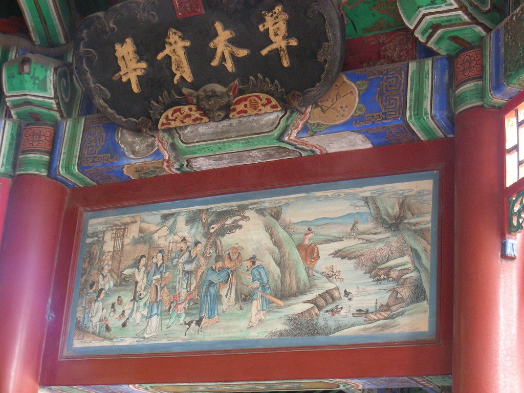中国の建造物でよく見かける、赤・青・黄・緑といった強いコントラストの色を並べた色合いはとても派手で、日本では滅多に見かけることがない色使いですが、不思議と中国という大陸の風土にあっているように感じられます。